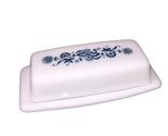- Vintage PYREX Old Town Dark Blue Onion Butter Dish w/Lid Milk Glass USA 7”