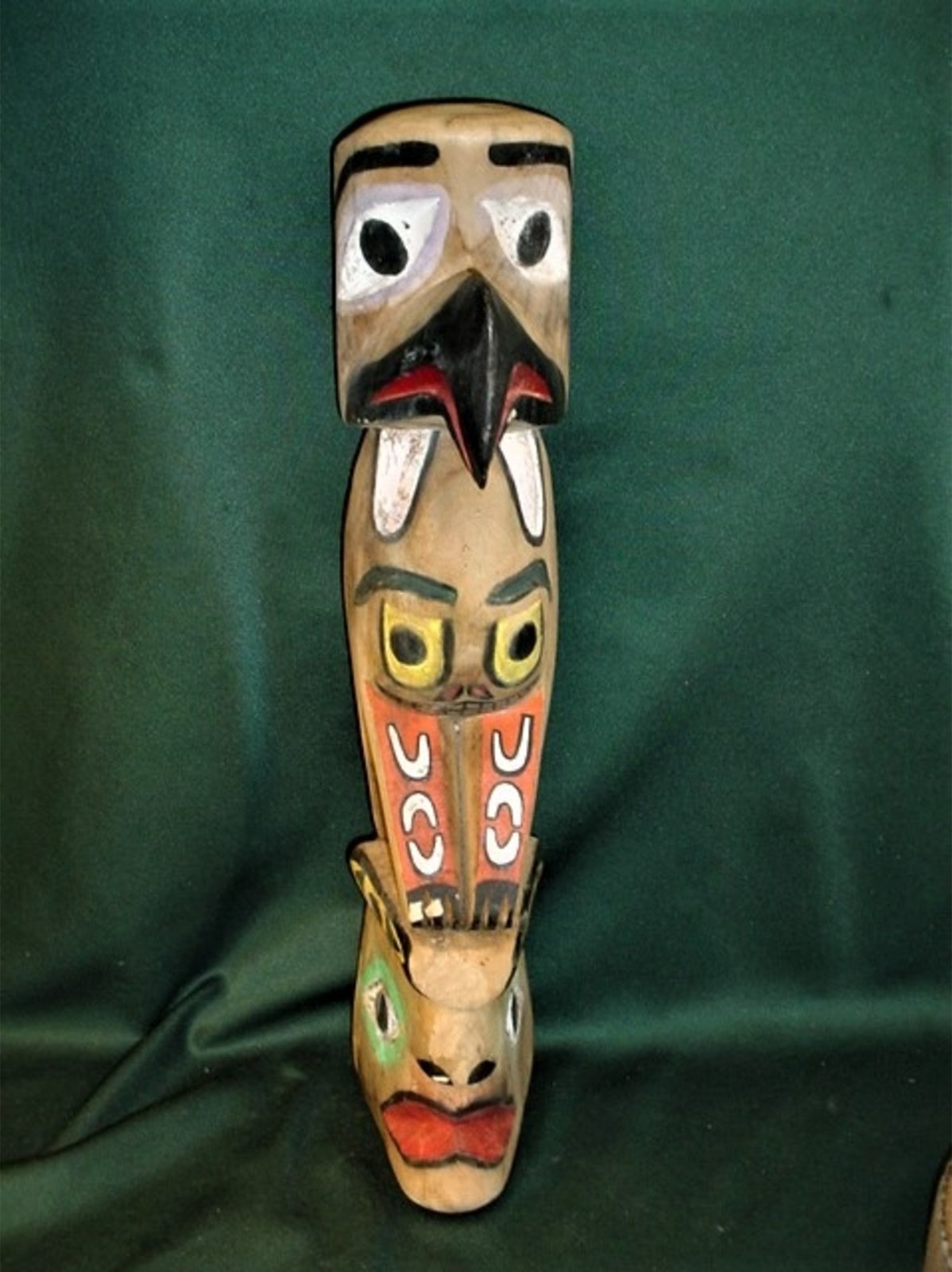 We do believe this to be a fairly rare object, especially outside of the tribal realms. There is some amazing symbolism going on throughout this totem pole with the crow on top being the obvious first expression.
