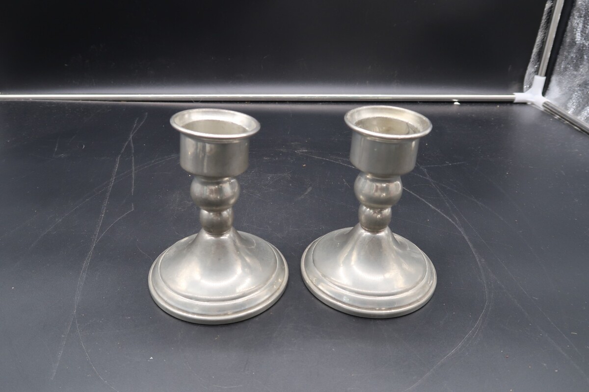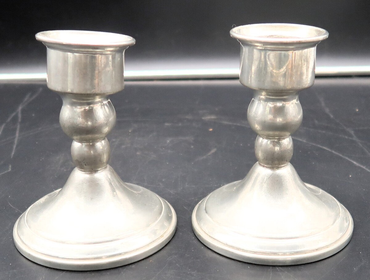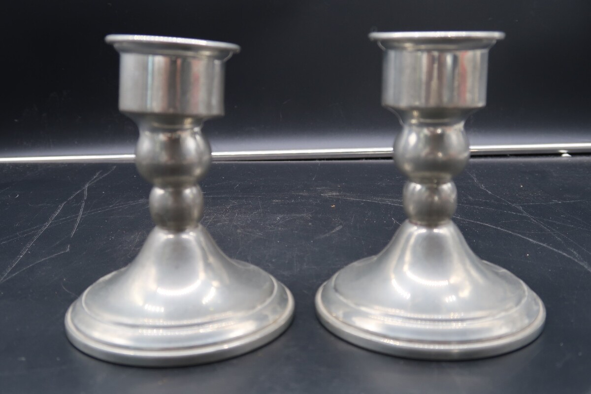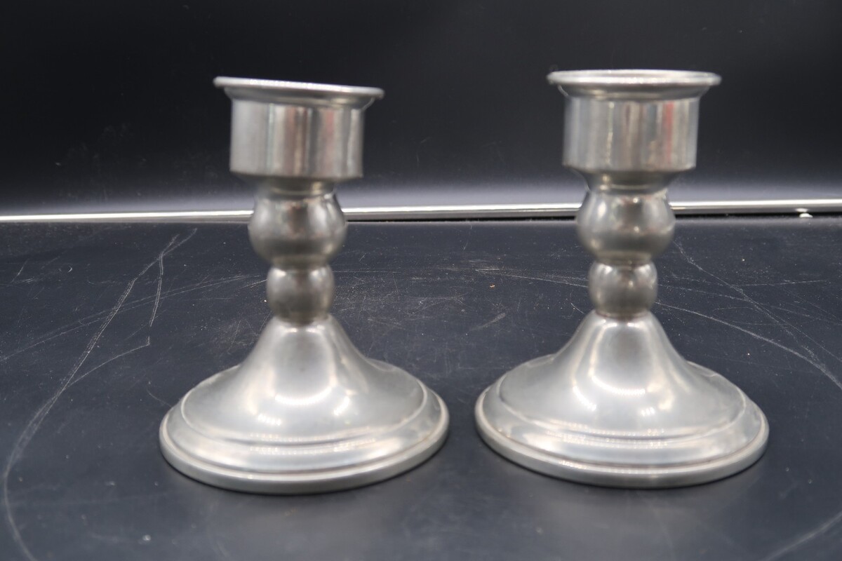 - Vintage Pair Web Pewter Weighted Modern Candlestick Holders 5" Holiday Table