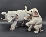 Vintage Pair of Flocked Fuzzy Elephant Plastic Blow Mold Toys Made in Hong Kong