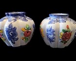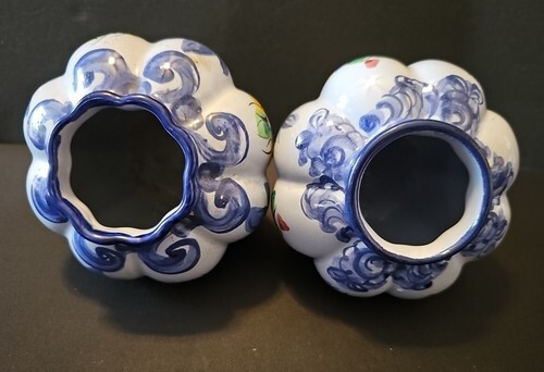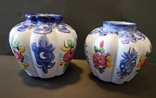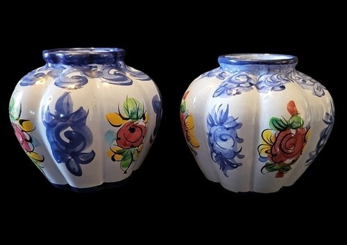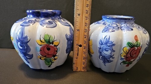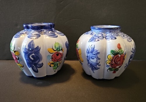 - Vintage Pair of Vestal Alcobaca Hand Painted Small Vases Made In Portugal 706