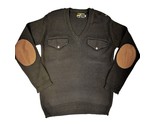 Authentic vintage wool sweater by Pakistan Hosiery, size 40, in army green. Features two chest pockets, soft flannel elbow patches (not leather), elastic waist and cuffs for a structured military fit. A classic utilitarian piece with rugged styling, perfect for collectors and modern workwear fans.