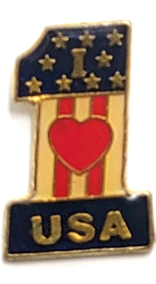 - Vintage Patriotic Enamel Pins Lot of 2 Red Heart USA Number One & I Love America