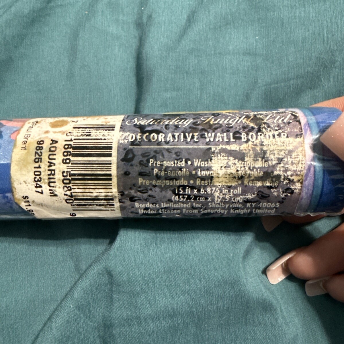 This listing is for one sealed roll of Paul Brent ?Aquarium? wallpaper border featuring a colorful underwater design with clownfish, coral, shells, and bright tropical colors. Despite the worn outer label, the roll is still sealed in factory plastic and has never been used.
