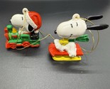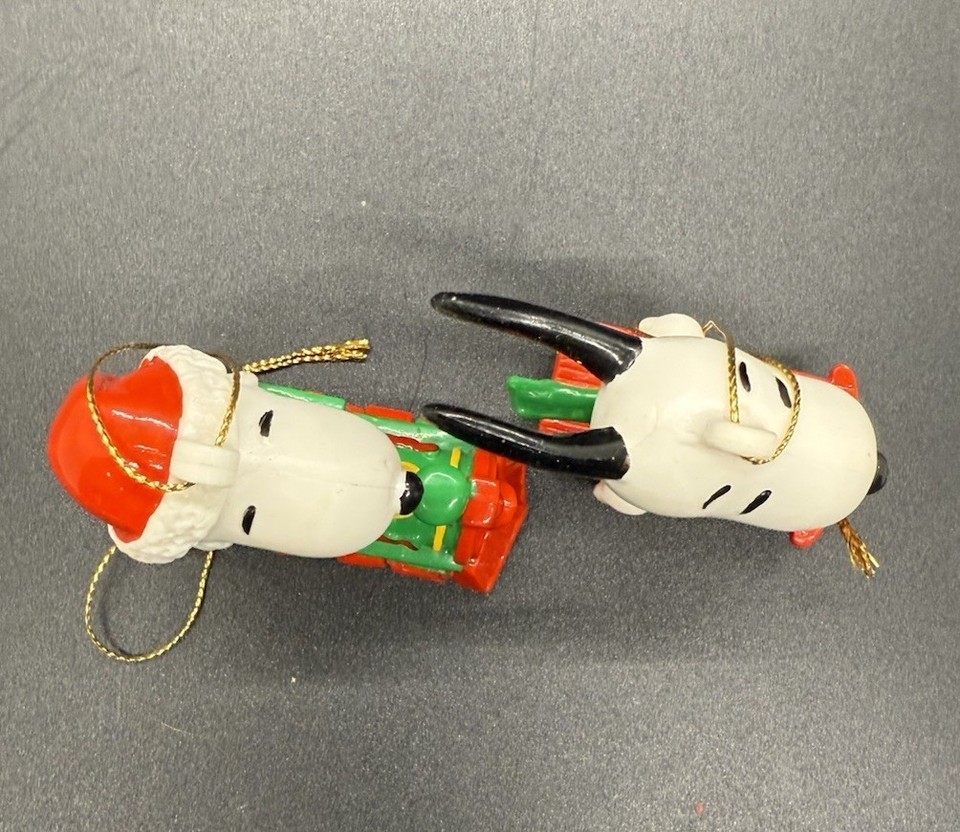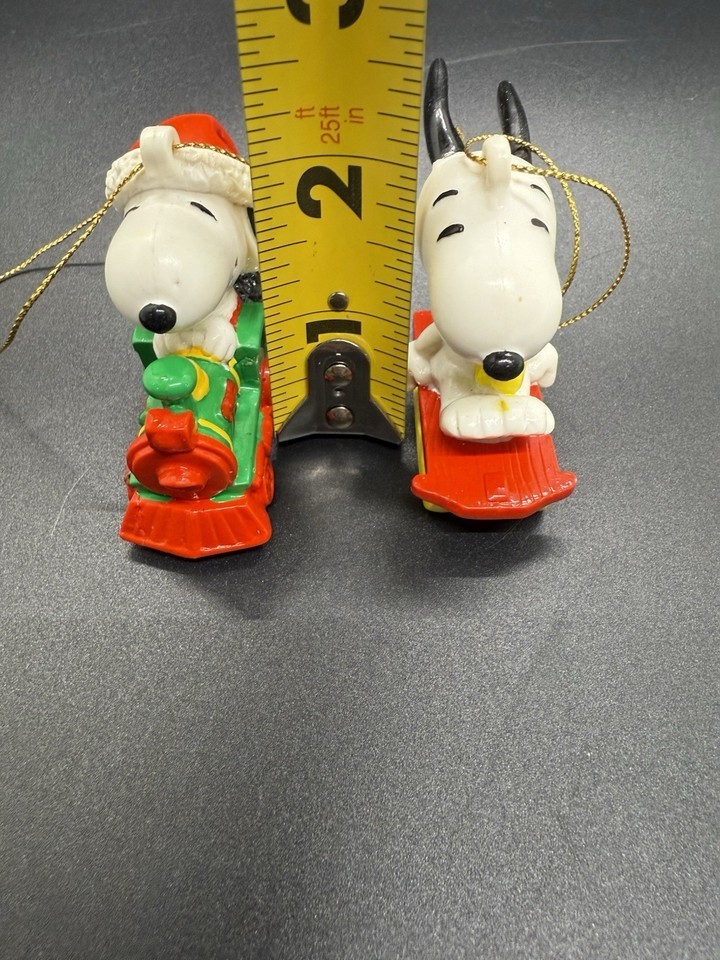 - Vintage Peanuts Snoopy Christmas Ornaments Lot – Train & Sled w/ Woodstock 1980s
