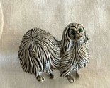 Vintage Pekinese Dog Brooch Enamel with Green Jeweled Eyes 1.25" Signed Gerry