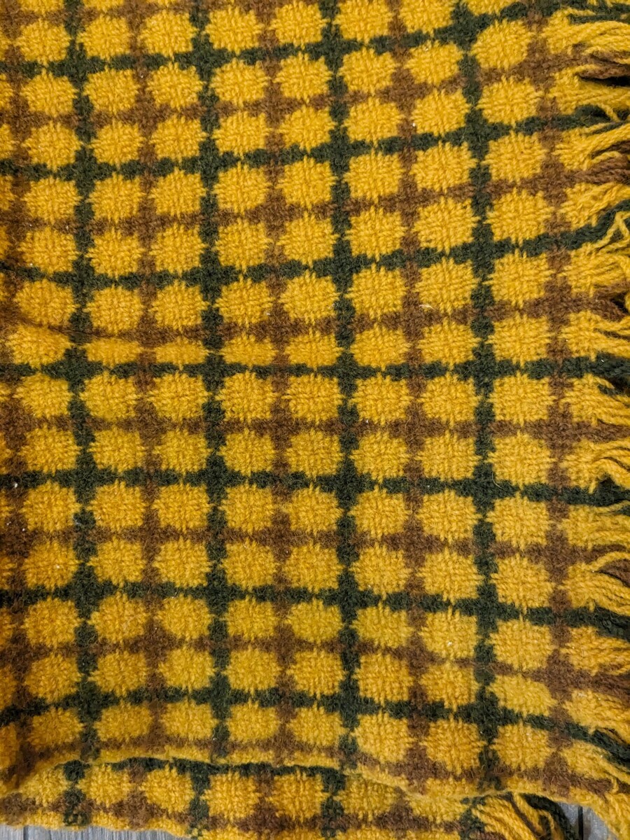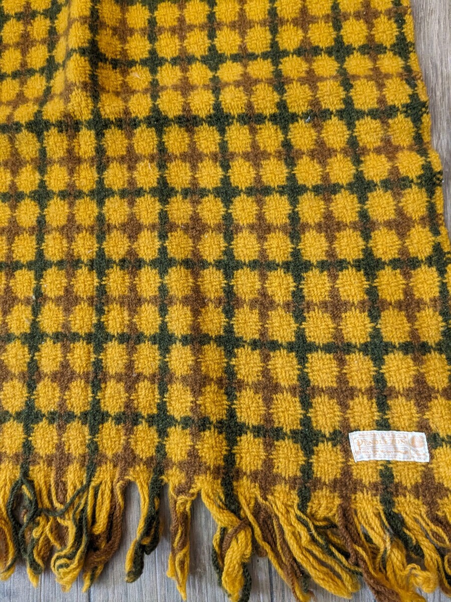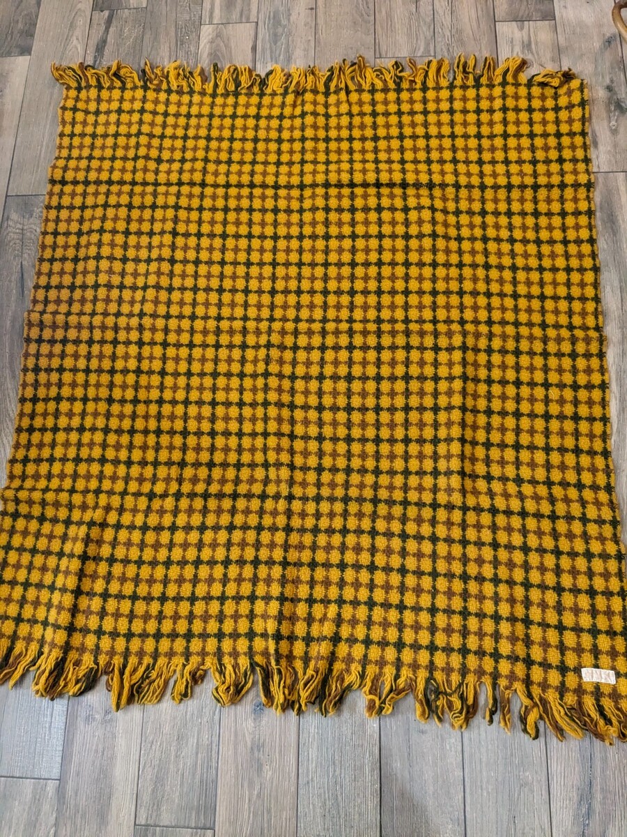 - Vintage Pendleton Woolen Mills Blanket Wool Orange Brown fringe windowpane plaid