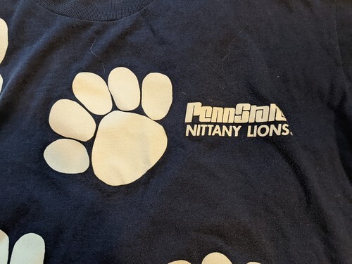 A vendre est un t-shirt vintage Penn State Nittany Lions Paw Print Blue 50 50 USA 2 faces Large.