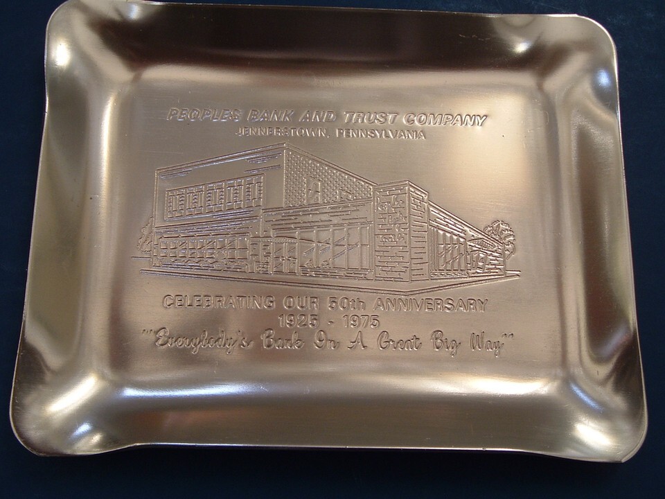 - Vintage Peoples bank and trust promotional metal trinket tip tray Jennerstown PA