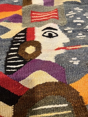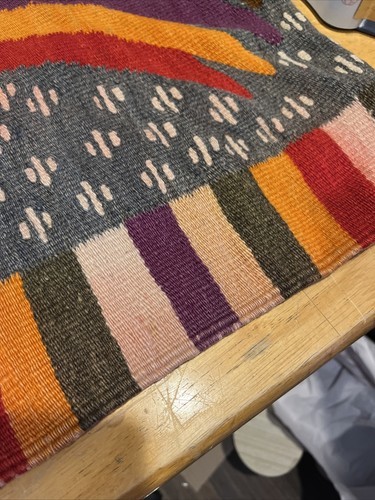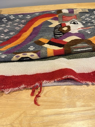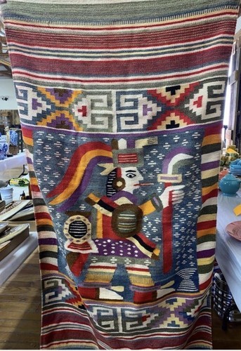 - Vintage Peruvian Wool Tapestry Tribal Boho Wall Art Handwoven Aztec Kilim 32x64