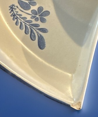 This Vintage PFALTZGRAFF YORKTOWNE Lazy Susan Replacement Edge Piece is a ceramic round dish with a blue and grey color pattern featuring a flower theme. It is an original vintage production from the Yorktowne product line by Pfaltzgraff, with an impressed backstamp. The matte finish and pottery production technique add to its vintage charm. Made in the United States, this lazy Susan edge piece adds a touch of nostalgia to your dining experience.