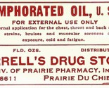 - Vintage Pharmacy Label CAMPHORATED OIL Farrell's Drug Prairie Du Chiem Wisconsin