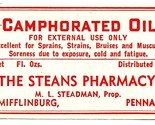 Vintage Pharmacy Label CAMPHORATED OIL Steans Pharmacy Mifflinburg Pennsylvania