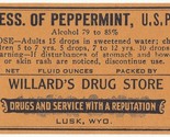 Vintage Pharmacy Label ESSENCE OF PEPPERMINT, U.S.P. Willard's Drug Lusk Wyoming