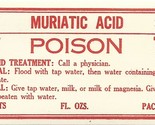 1 Vintage Pharmacy Label MURIATIC ACID POISON w/ Skull and Bones |