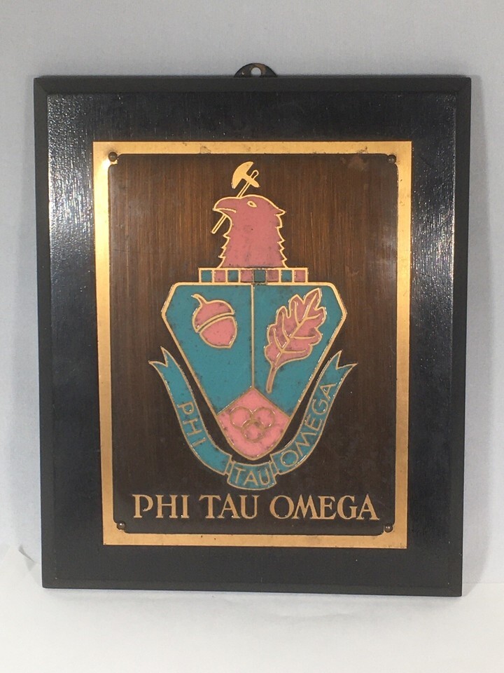 Vintage Phi Tau Omega Philanthropic Society Coat of Arms Wall Hanging Plaque 5? X 6?.