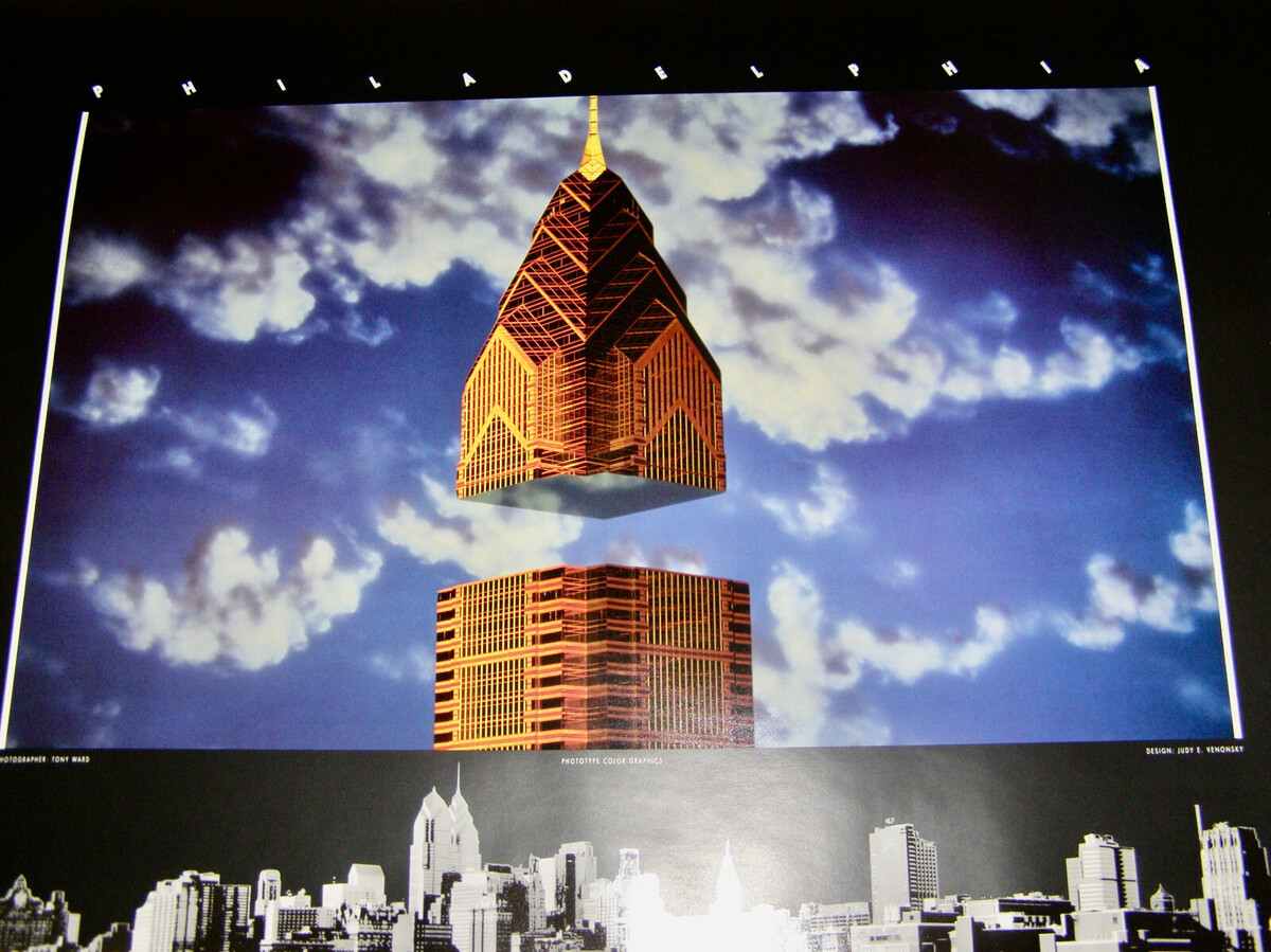VINTAGE “PHILADELPHIA” SKYLINE w/ CLOUDS + COMCAST TECHNOLOGY CENTER TOWER - NEW