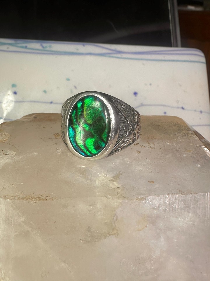 - Vintage Phoenix ring abalone band size 13.75 band sterling silver women men