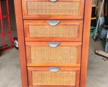 Vintage Pier One narrow lingerie dresser. 7 drawers. One pull is broken. The drawer above the broken pull drawer and the broken pull drawer seem to rub together when opened. Has some other wear from use. Local pick up is the best option due to size. Message with zip code for a freight quote.