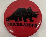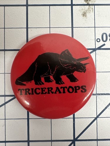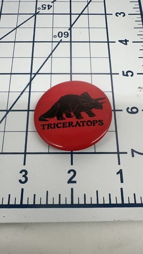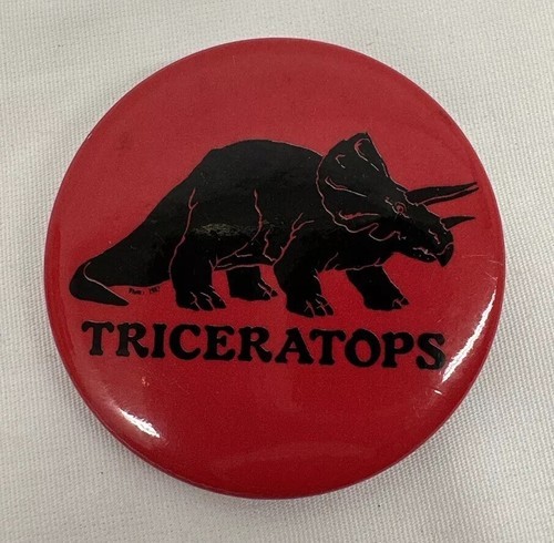 This vintage pinback button features the iconic TRICERATOPS dinosaur, with a unique design that is sure to impress any collector. The button is in great shape and ready to be added to your collection.