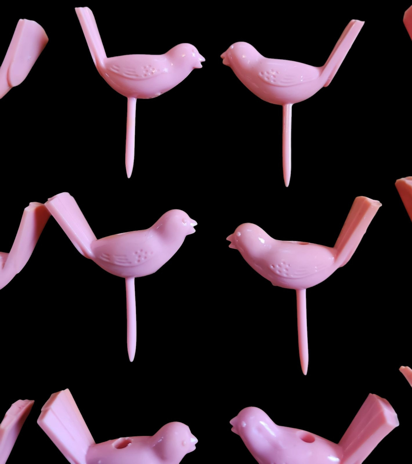 - Vintage Pink Bird Plastic Cupcake Cake Toppers Set of 20 Retro MCM Party Decor