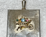 Vintage Pink Blue Rhinestone Flower Cart Raised Floral Pillbox Pill Box W Handle