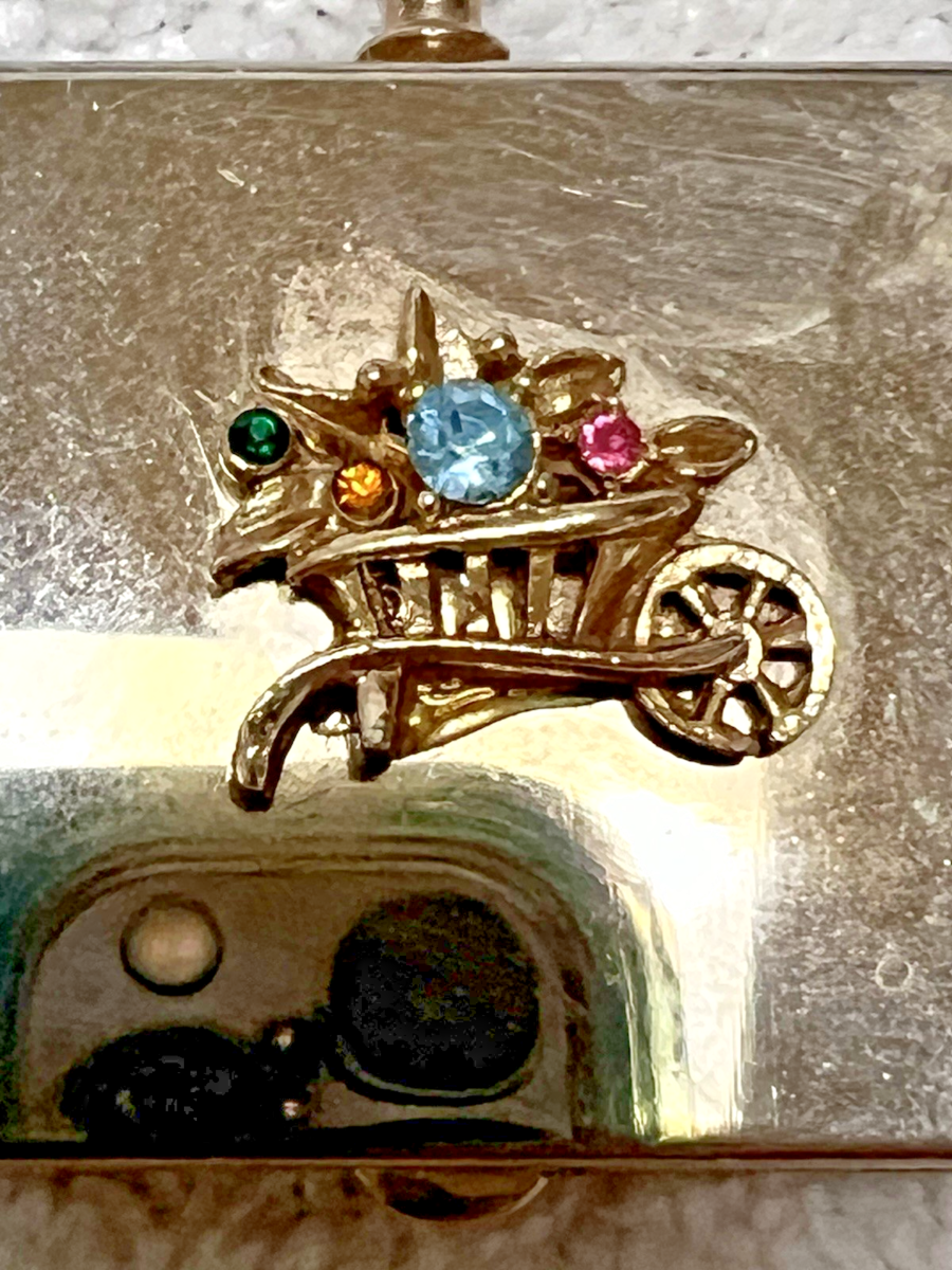 - Vintage Pink Blue Rhinestone Flower Cart Raised Floral Pillbox Pill Box W Handle
