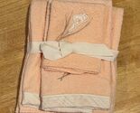 - Vintage Pink Peach Calla Lily Floral Appliqué Towel Set Bath Hand Washcloth New