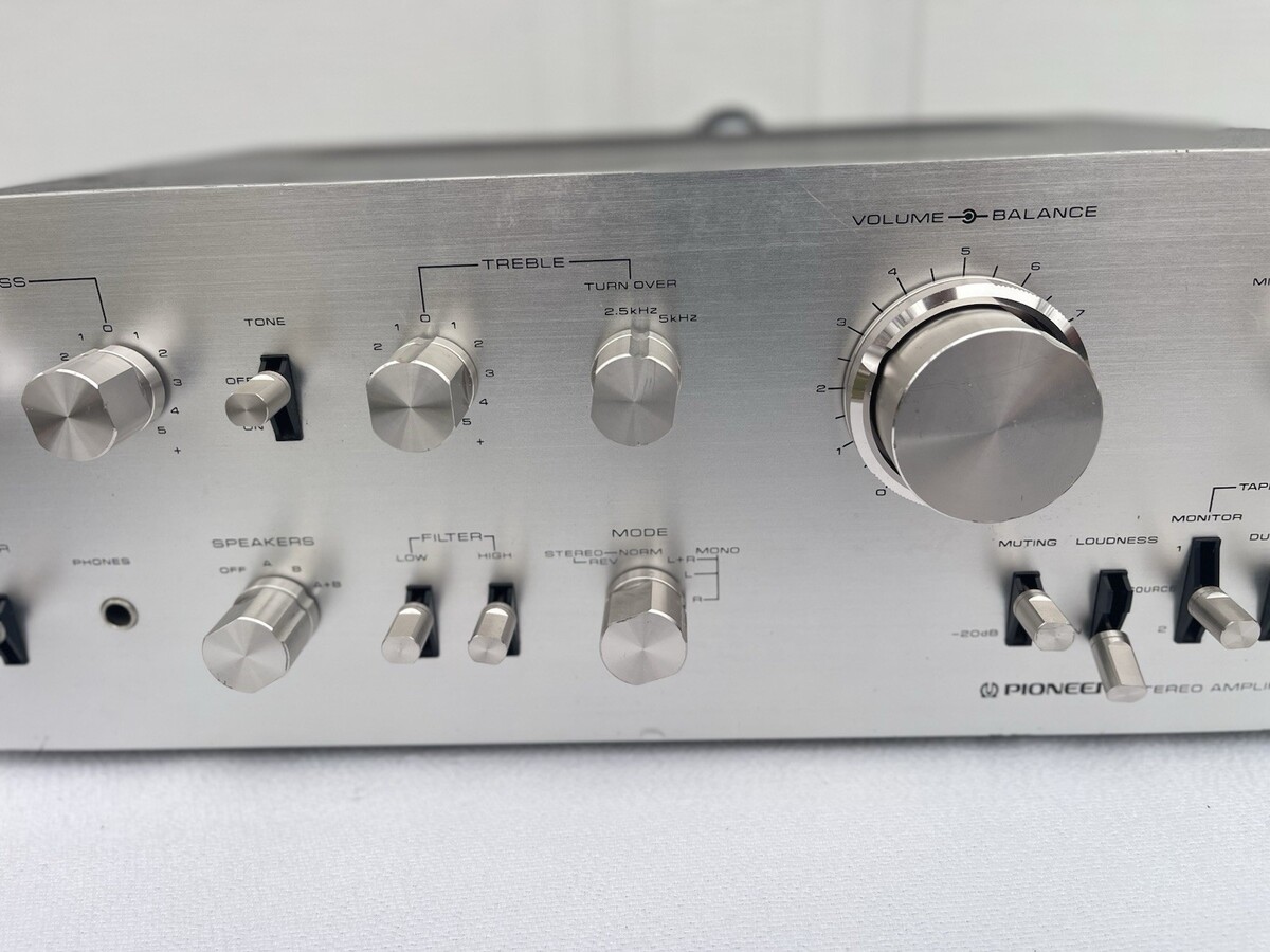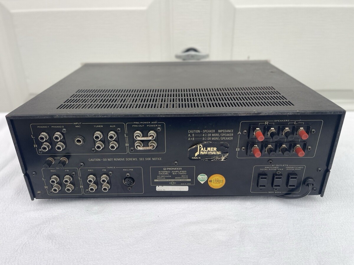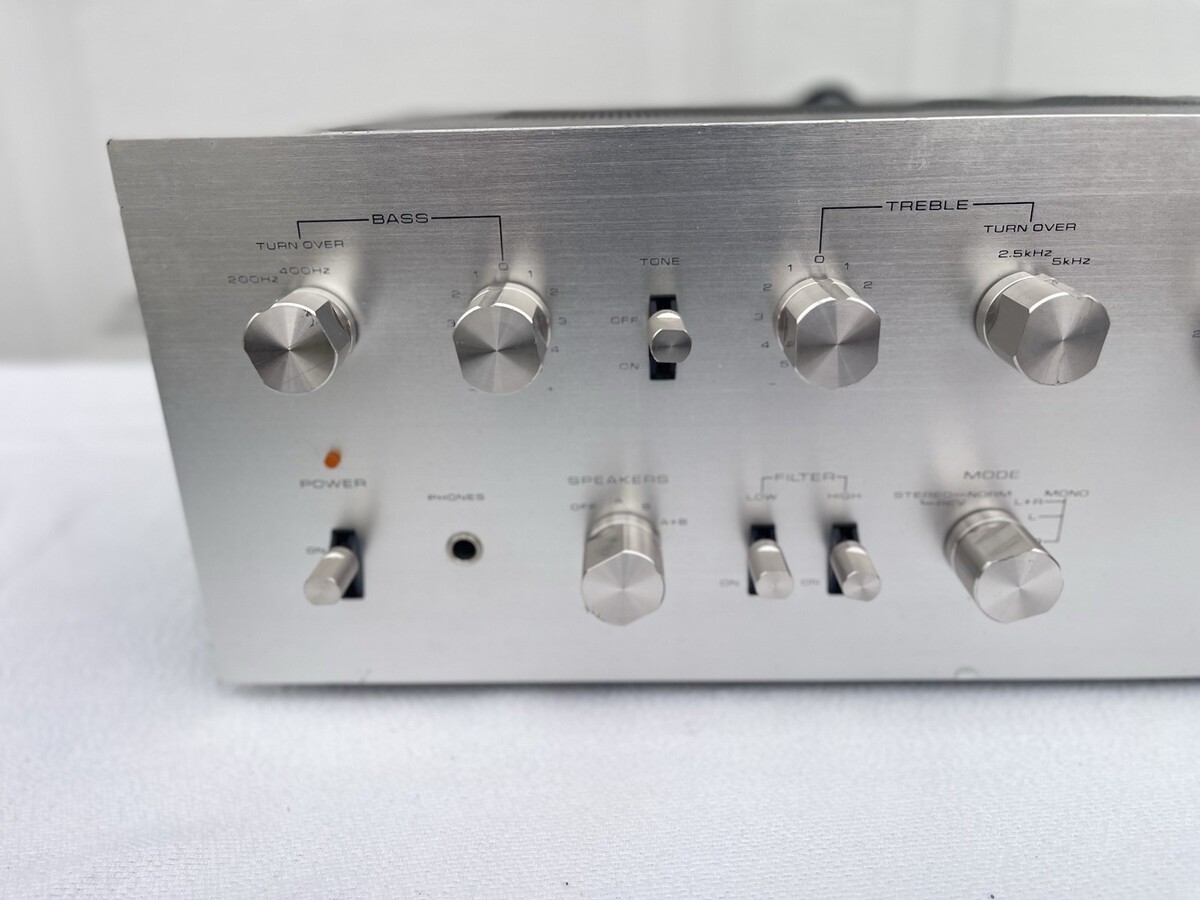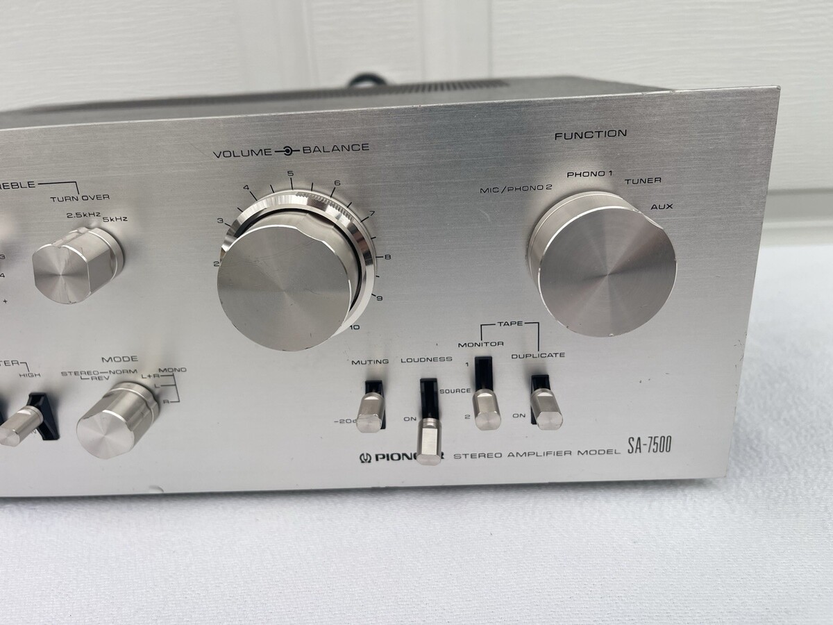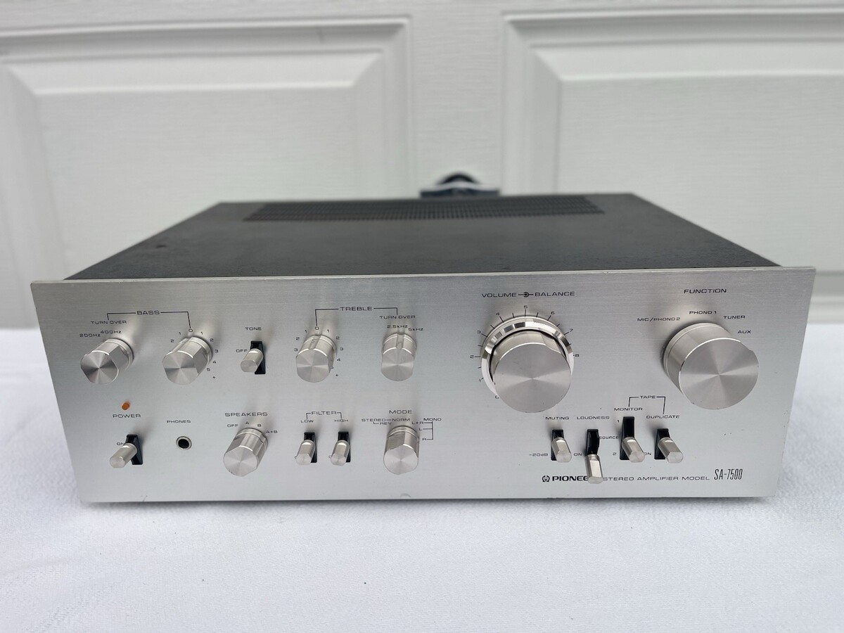 The Vintage Pioneer SA 7500 Integrated Amplifier is a classic piece of audio equipment from the renowned brand Pioneer. This amplifier combines both the preamplifier and power amplifier functions in a single unit, making it a versatile and compact option for vintage audio enthusiasts looking to enhance their sound system. The Pioneer SA 7500 model is known for its high-quality audio performance and durable construction, making it a prized addition to any vintage audio collection.