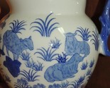 - Vintage Pitcher 9+" unsigned Blue & White woman carrying water Sheep Goats