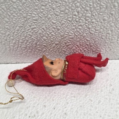 - Vintage Pixie Elf Kneehugger Red 4" Ornament Figure