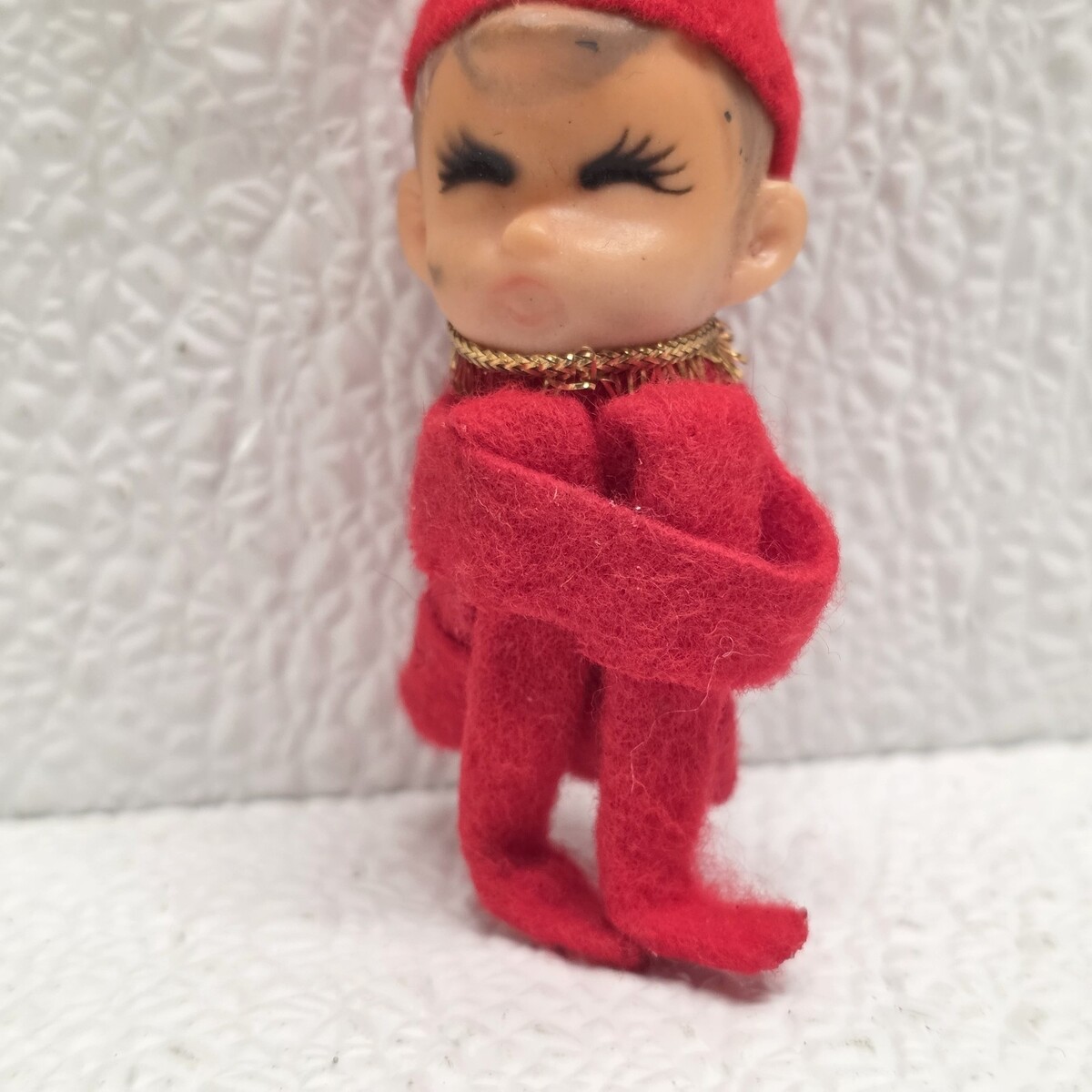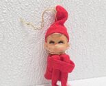 Vintage Pixie Elf Kneehugger Red 4" Ornament Figure. Images show actual item that will ship.