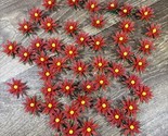 This product is a set of approximately 50 vintage plastic Christmas poinsettia decorations. The poinsettias are in a festive red color, perfect for holiday gift and party trimming. Made of durable plastic, these poinsettias are a charming addition to any Christmas decor. Ideal for adding a retro touch to your holiday celebrations, these trims are a nostalgic way to enhance your festive decorations.