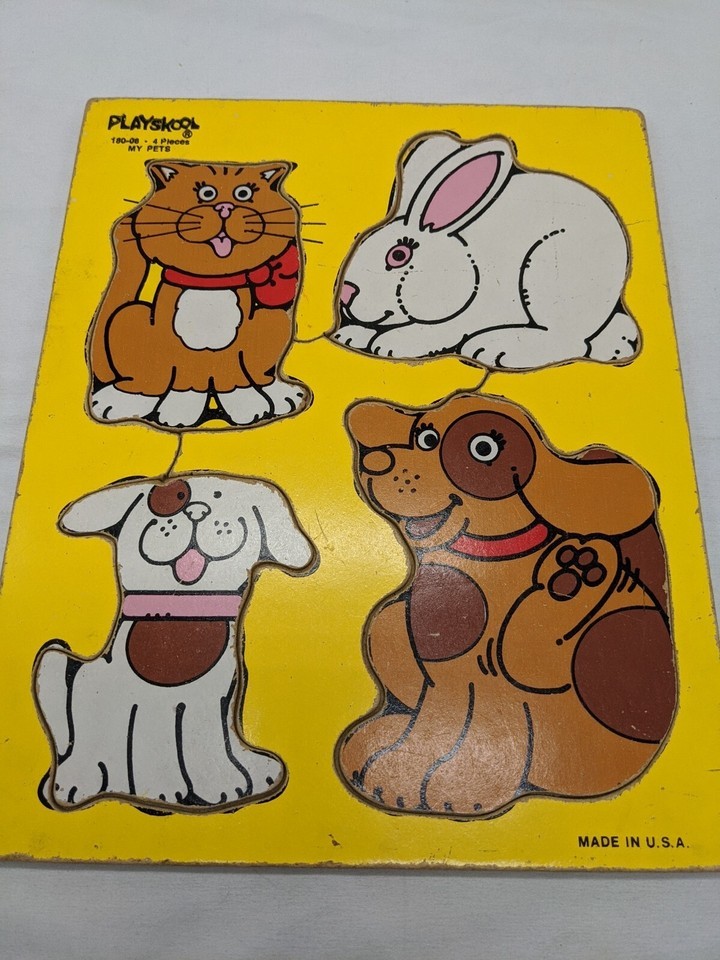 - Vintage Playskool 4 Piece Wooden Childrens Puzzle My Pets 180-08