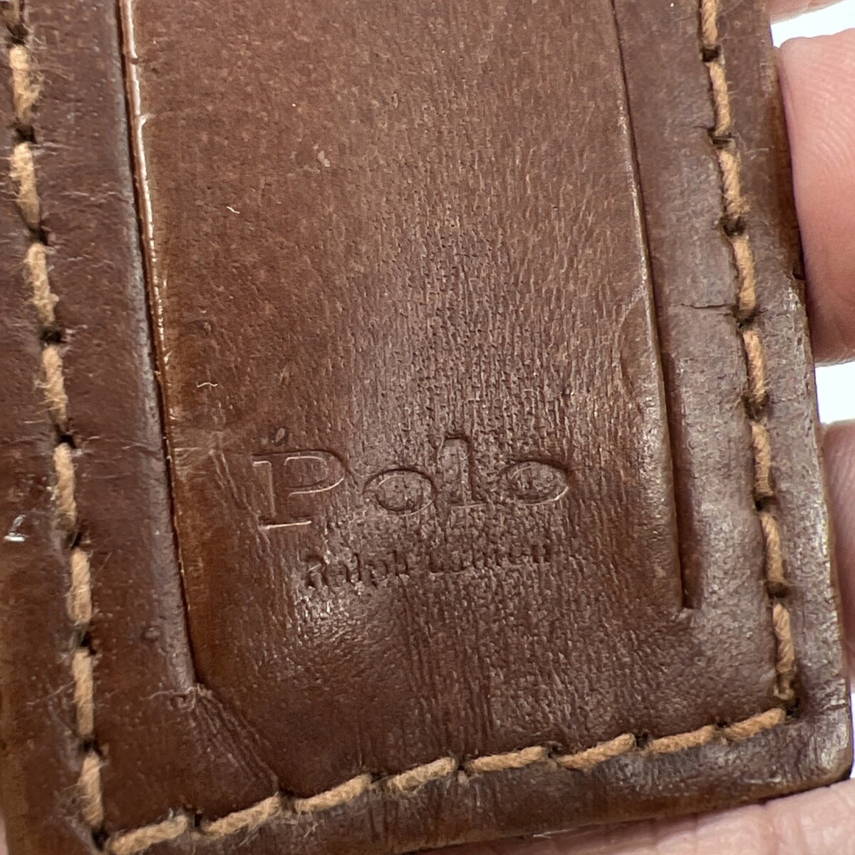 - Vintage Polo Ralph Lauren Brown Leather Luggage Tag Purse Charm Logo 3"