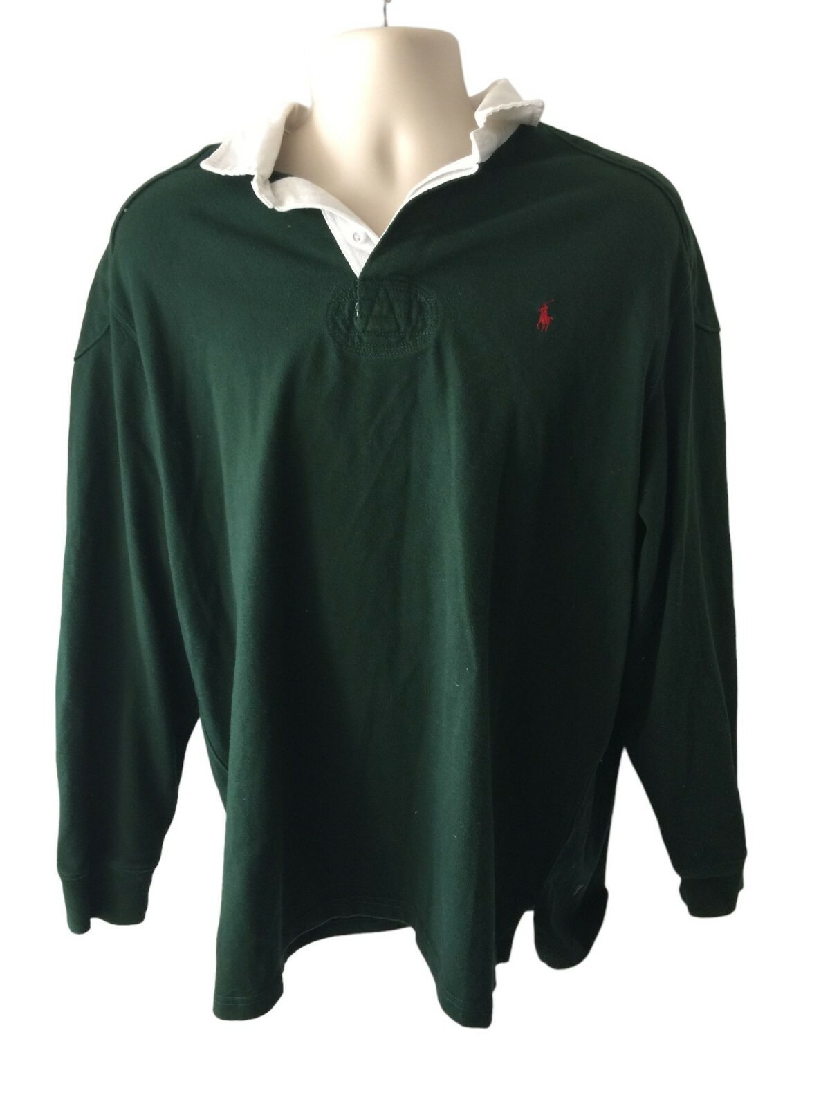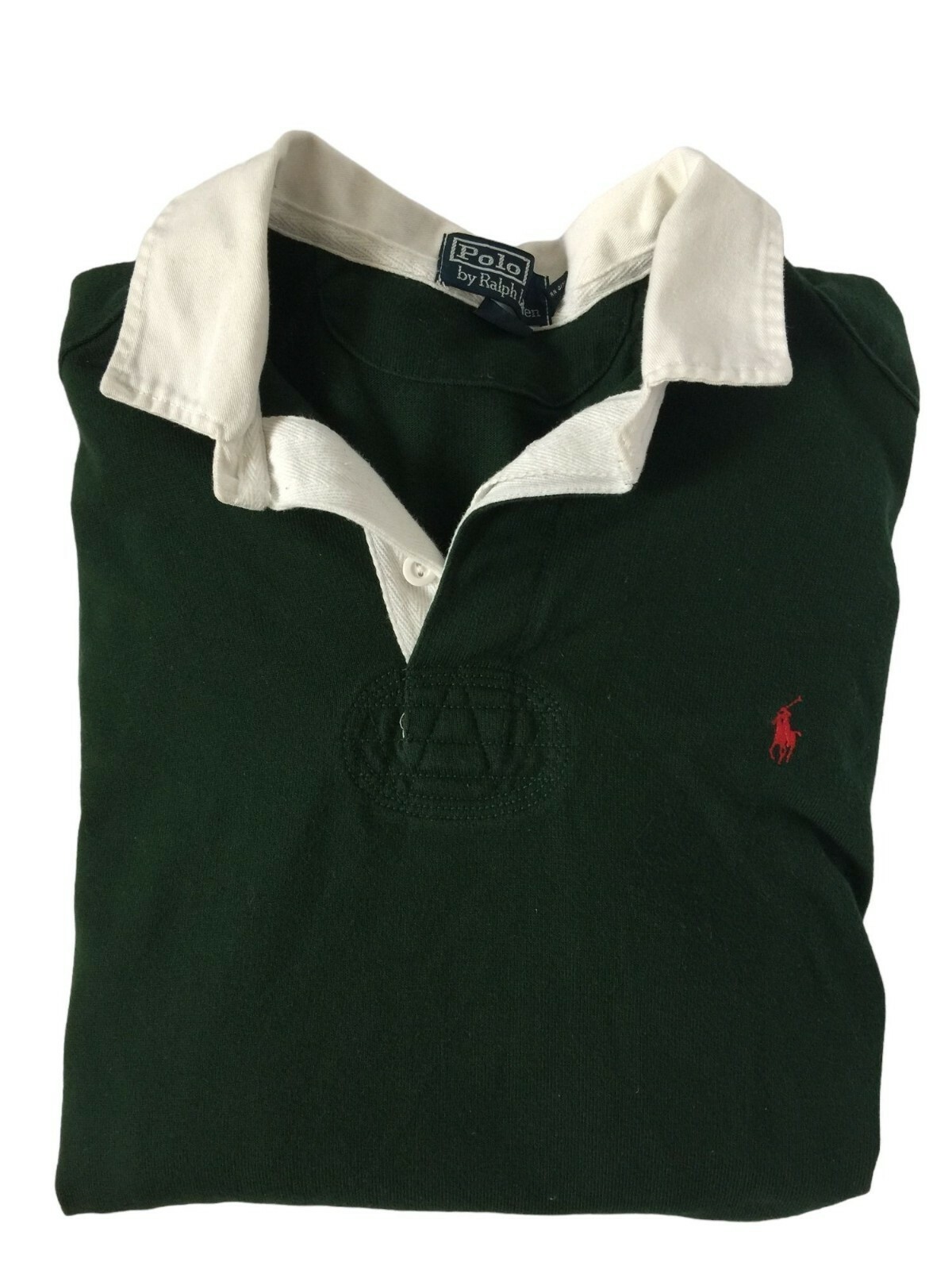 - Vintage Polo Ralph Lauren Green Long Sleeve Rugby Elbow Patch Polo Shirt Large L