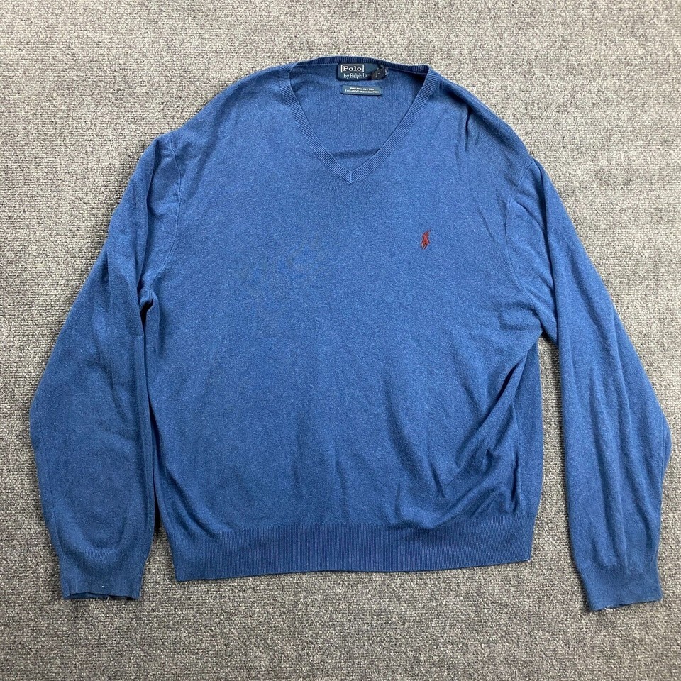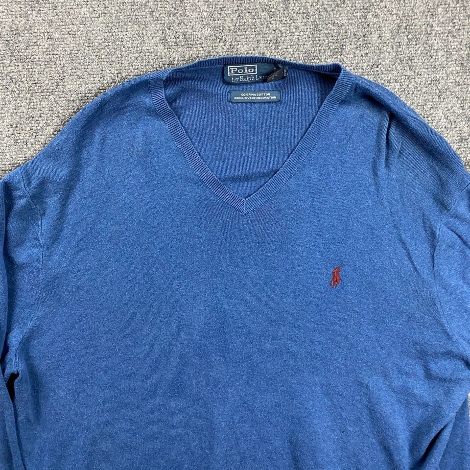 - Vintage Polo Ralph Lauren Sweater Adults XXL Blue V-Neck 100% Pima Cotton Mens