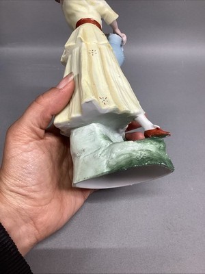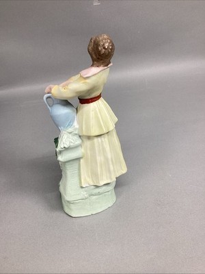 - Vintage Porcelain Figurine - Woman Holding Jug Of Water - 8”H