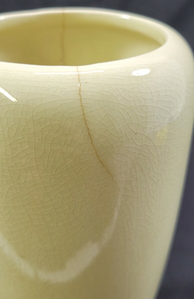 Vase is in vintage condition with signs of age and use. There is crazing throughout the vase and two hairline chips and either side.
