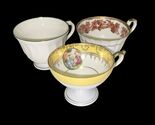Lot of 3 Vintage Porcelain Footed Teacups ? an elegant mixed collection featuring three distinct and beautifully detailed designs, perfect for collectors or display.