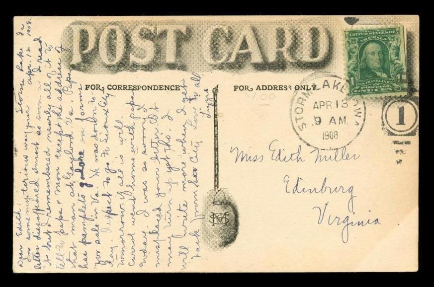 - Vintage Postcard Lily Pond Como Park St Paul 1908 Cancel Storm Lake Iowa