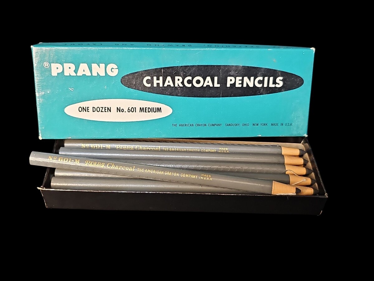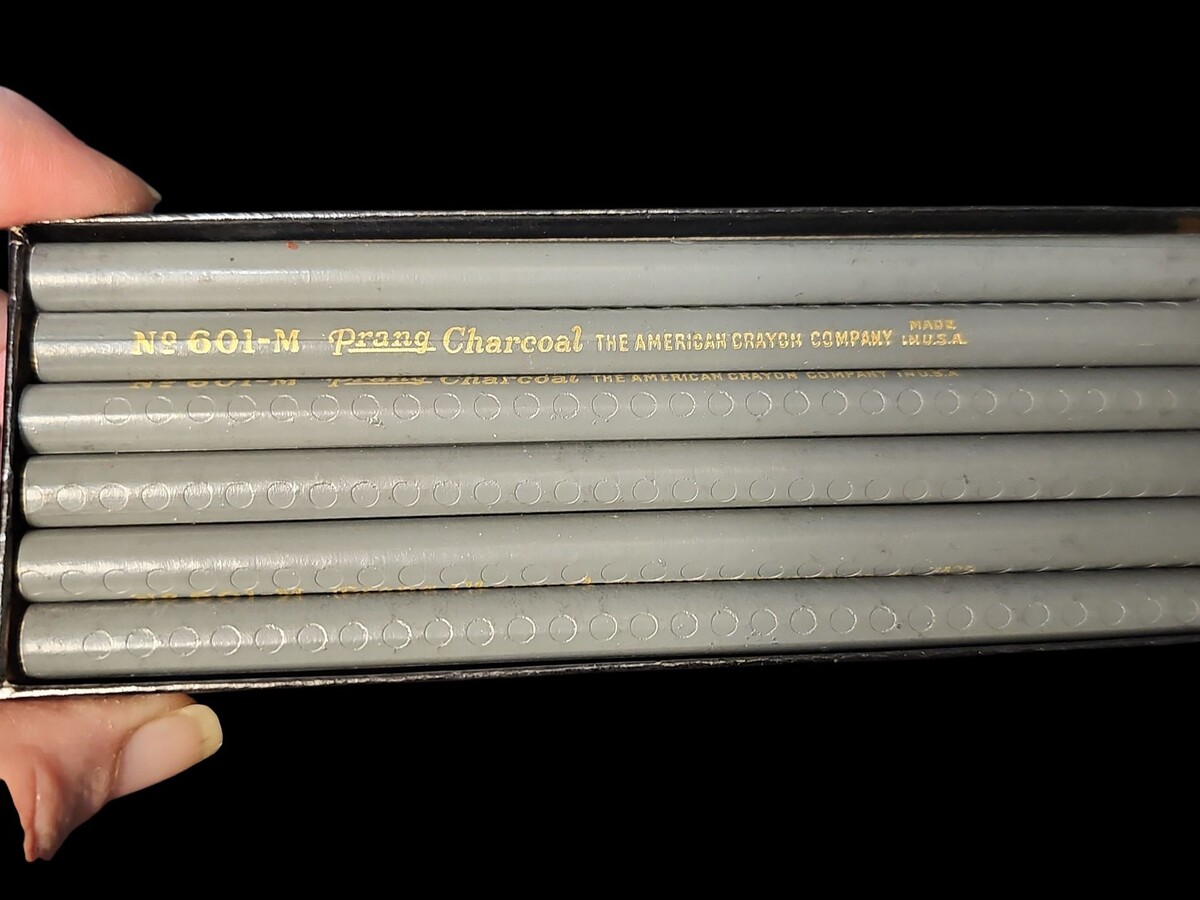 - Vintage Prang Charcoal Pencils No 601 Medium 1 Doz Box NOS Artist Drawing USA