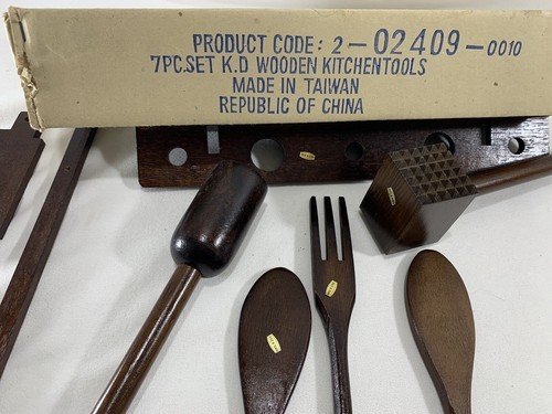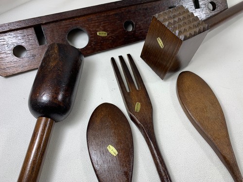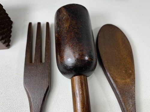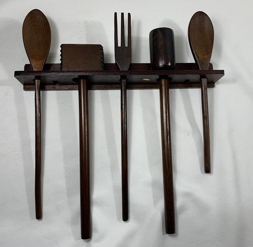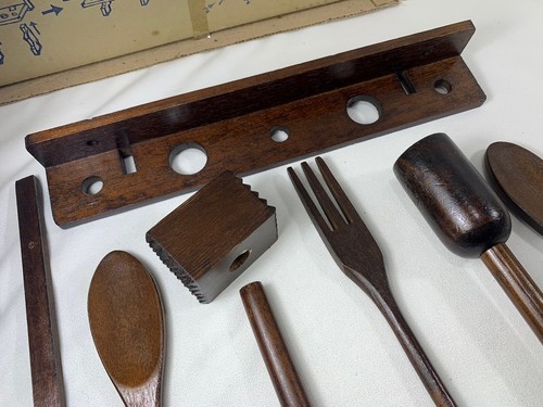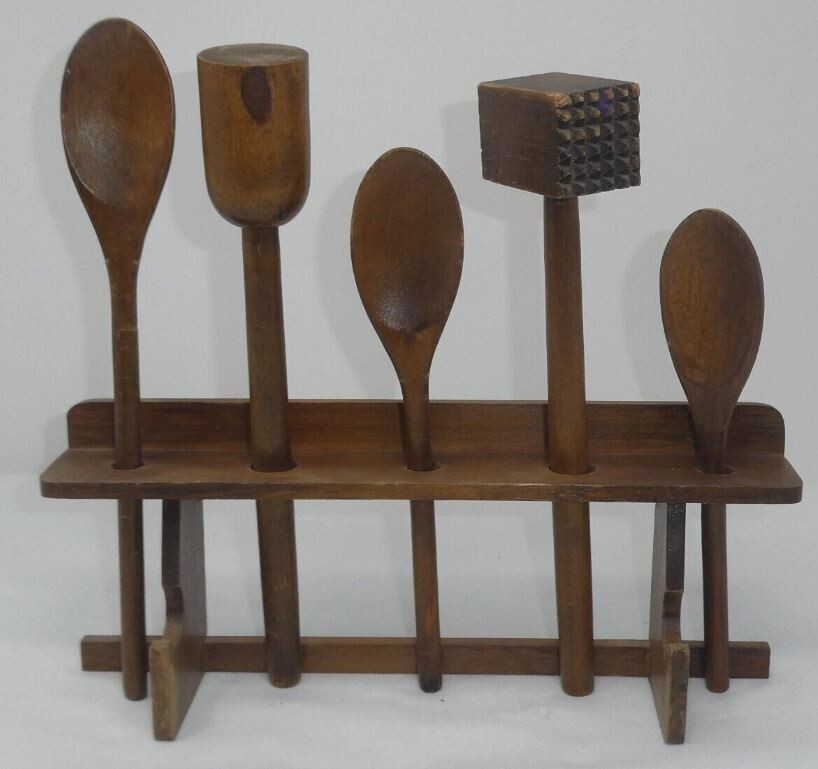 - VINTAGE PRIMITIVE RUSTIC FARMHOUSE WOOD KITCHEN COOKING TOOLS UTENSILS W/RACK