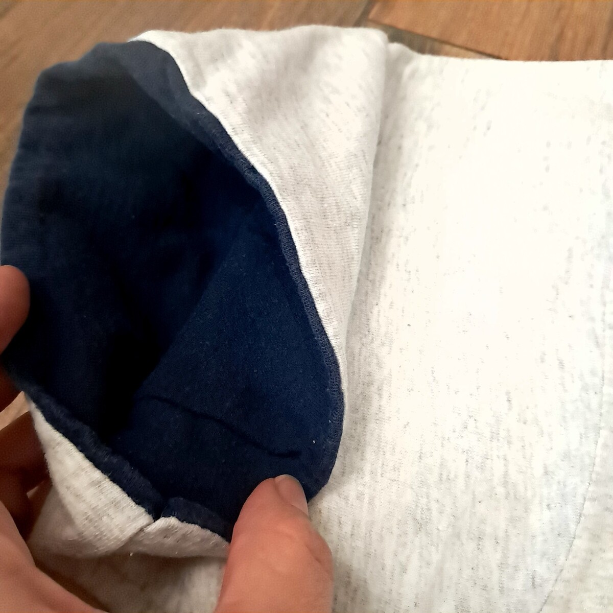 Crew neck. Size LARGE. Light gray heather with sleeves that can be rolled up to show the navy on the inside of the sleeve(sleeves are double layer)