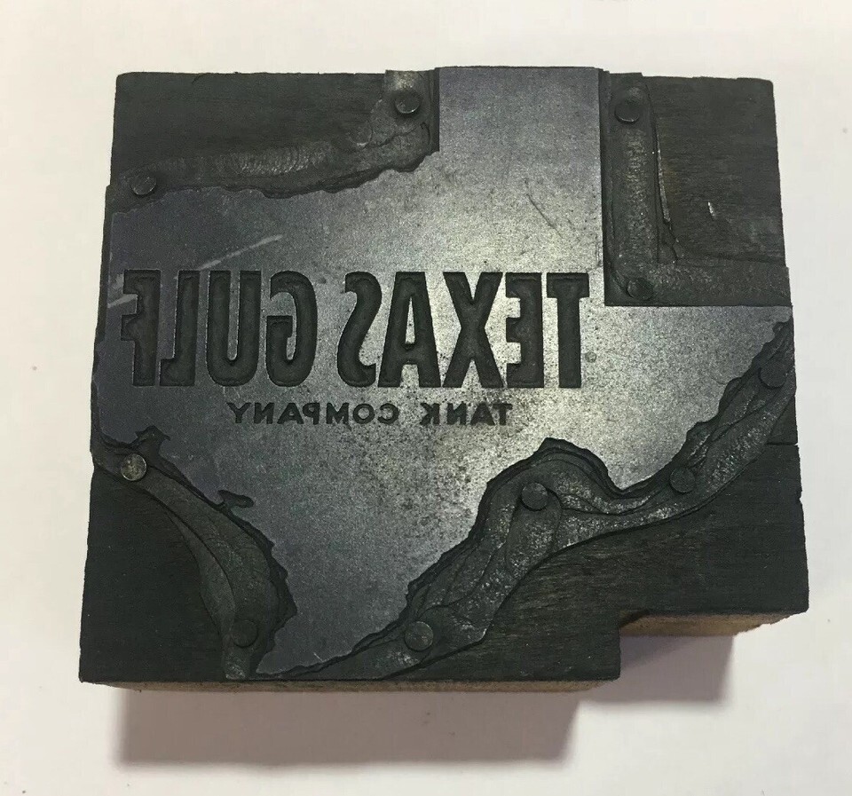 - Vintage Printing Block Texas Gulf Tank Company 2 1/4" x 2"