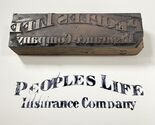 Vintage Printing block People’s Life Insurance Company 4 5/8 x 1/4”