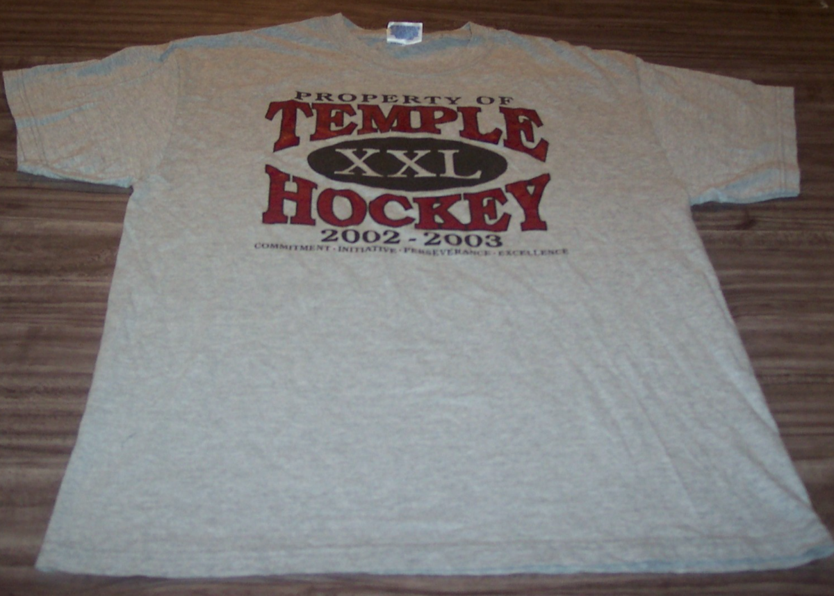 - Vintage Property Of Temple University HOCKEY T-SHIRT MENS LARGE Gray 2002-2003
