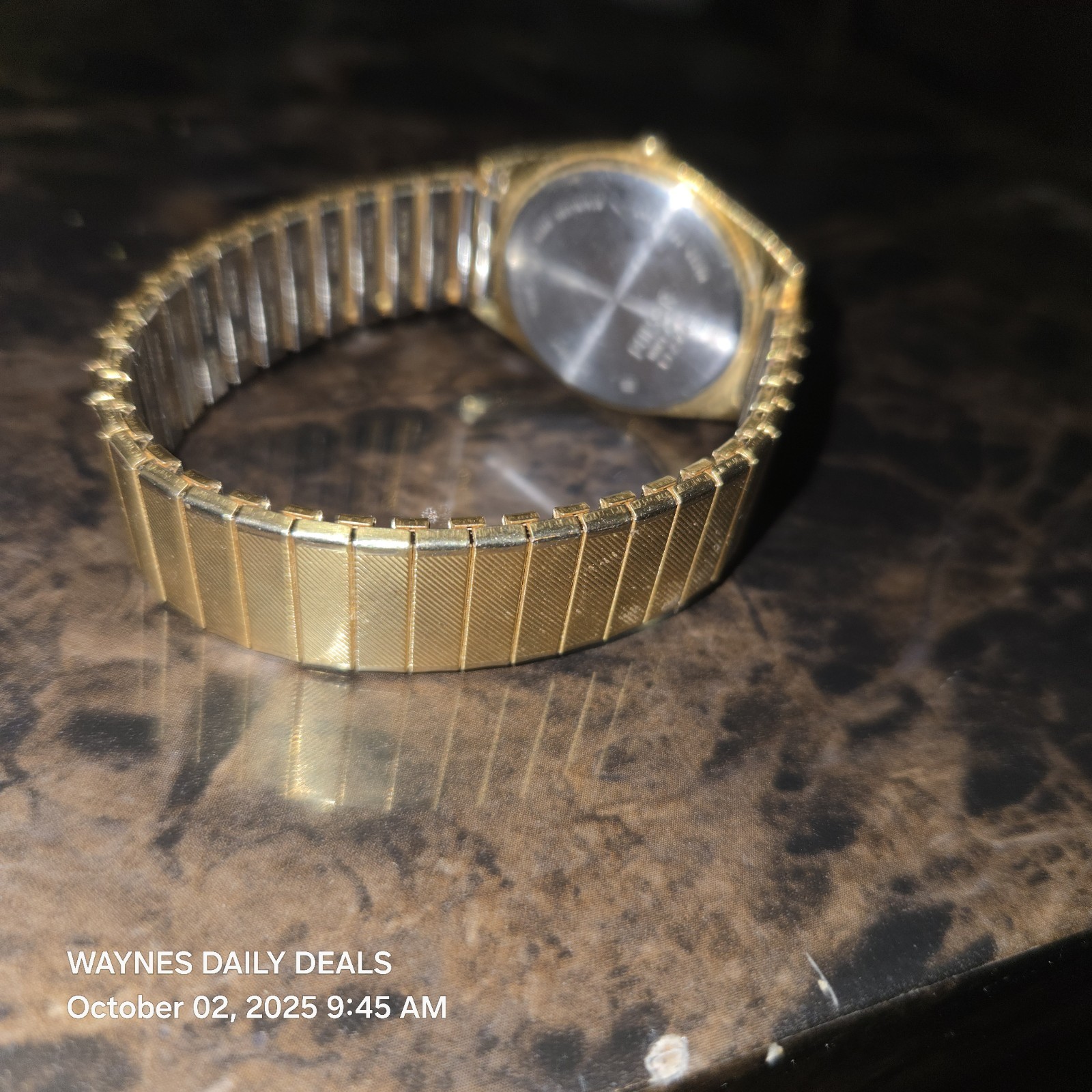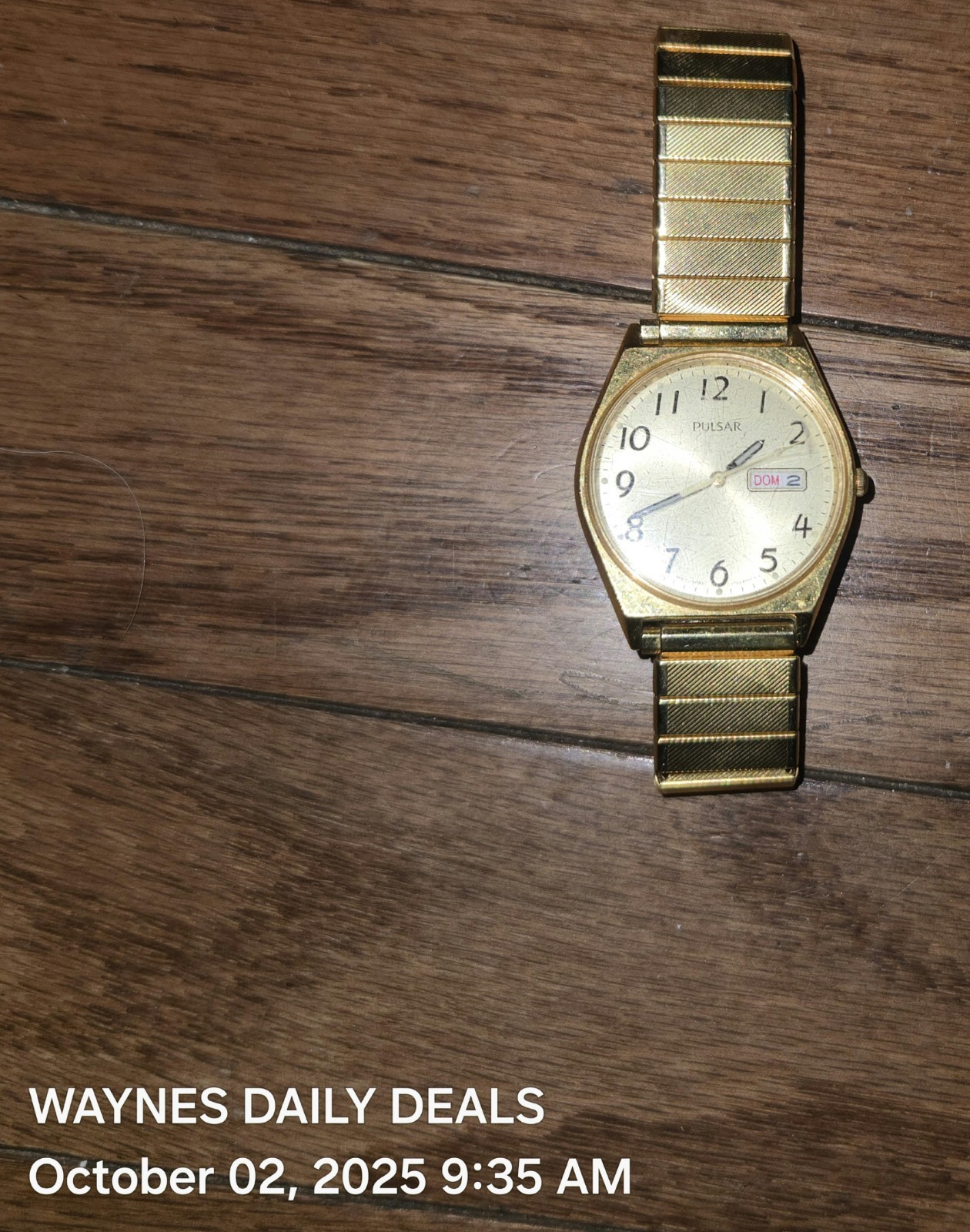 This is a classic 1980s/1990s Pulsar men?s dress watch with a timeless gold-tone design. Perfect for collectors, vintage watch enthusiasts, or anyone looking for a retro piece to restore.
