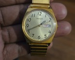 Vintage Pulsar V733-8A40 Men’s Quartz Watch – Gold Tone, Day/Date, Stretch Band