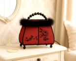 - Vintage Purse Handbag Accent Lamp – Red Fabric Shade, Black Feather Trim, Beaded